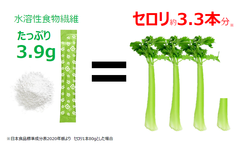- 1本でセロリ約3.3本分の食物繊維(3.9g)を配合