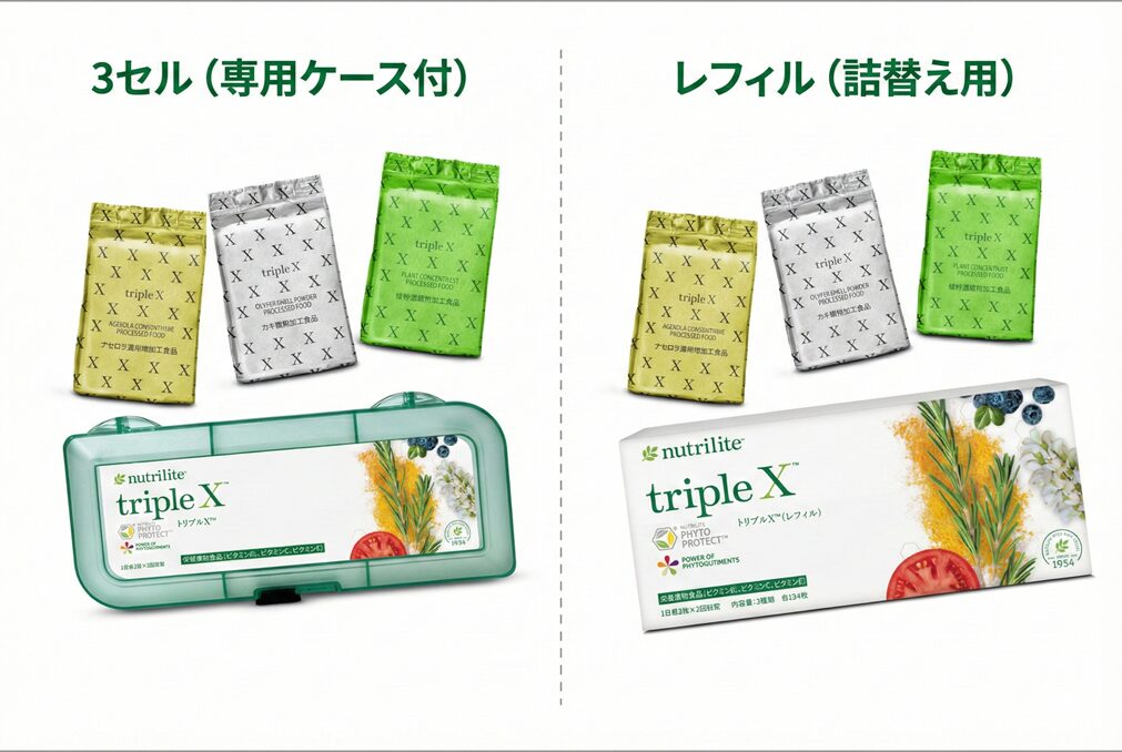 アムウェイ製品は、購入方法によって価格が大きく変動します。「トリプルX(レフィル)」を例に、いくら変わるのかを比較してみましょう。